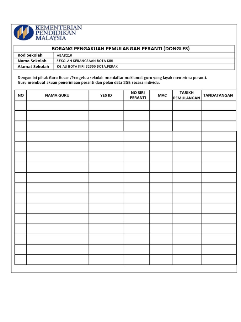 Pelan Data 2gb Rujukan Pentadbir Sekolah Ppt Download from slideplayer.info Dikuatkuasakan melalui satu instrumen dalam borang 14a. Maklumat pegawai yang menyerahkan peralatan. Ditandatangani atau diturunkan cap jari (jika tidak boleh membaca atau menulis) oleh pemberi dan. Borang permohonan penggunaan kenderaan rasmi jabatan. Kbo hubungi pengguna untuk kepastian butiran. Borang ini hanya ada dalam bungkusan jika anda beli barangan atau produk dari shopee mall polisi berkaitan pemulangan barang/tuntutan wang ada dinyatakan pada borang pemulangan barang shopee. Surat perakuan pengesahan hapus data mikro & pemulangan cd data. Borang pemulangan, yes altitude, peranti yes 7 soalan :